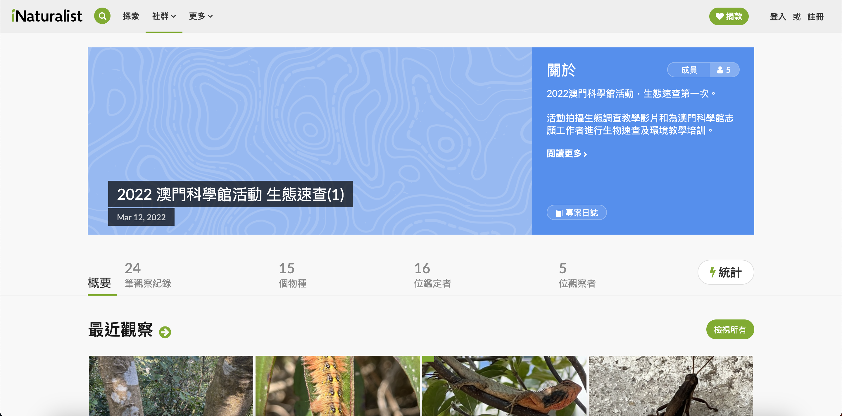 iNaturalist 上的教學與活動紀錄專案,可作為觀測與活動設計參考。