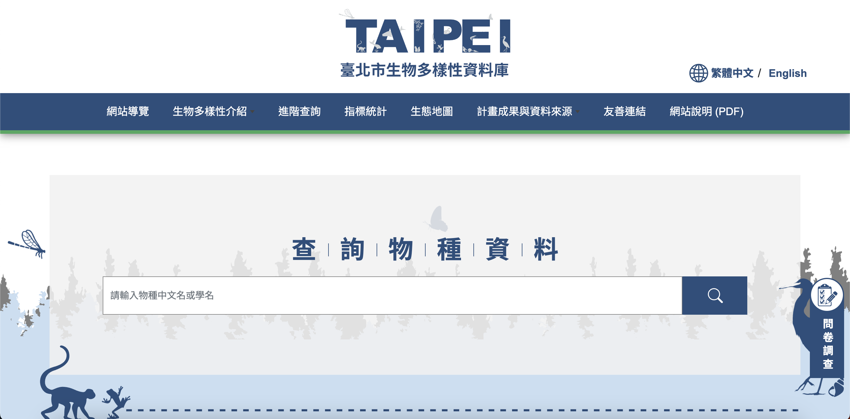 台北市政府建置的物種與棲地資料庫,可查詢本地物種名錄與分布資訊。
