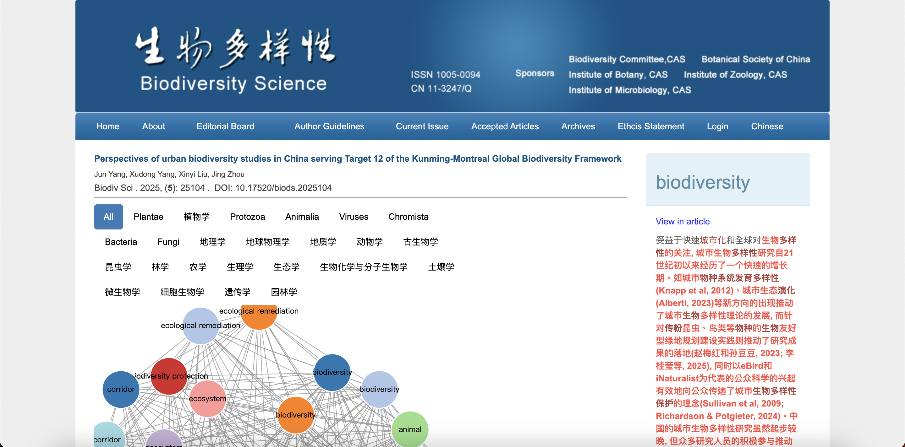 《生物多樣性》學術期刊之科學詞條與文章索引,可查閱相關研究與定義。