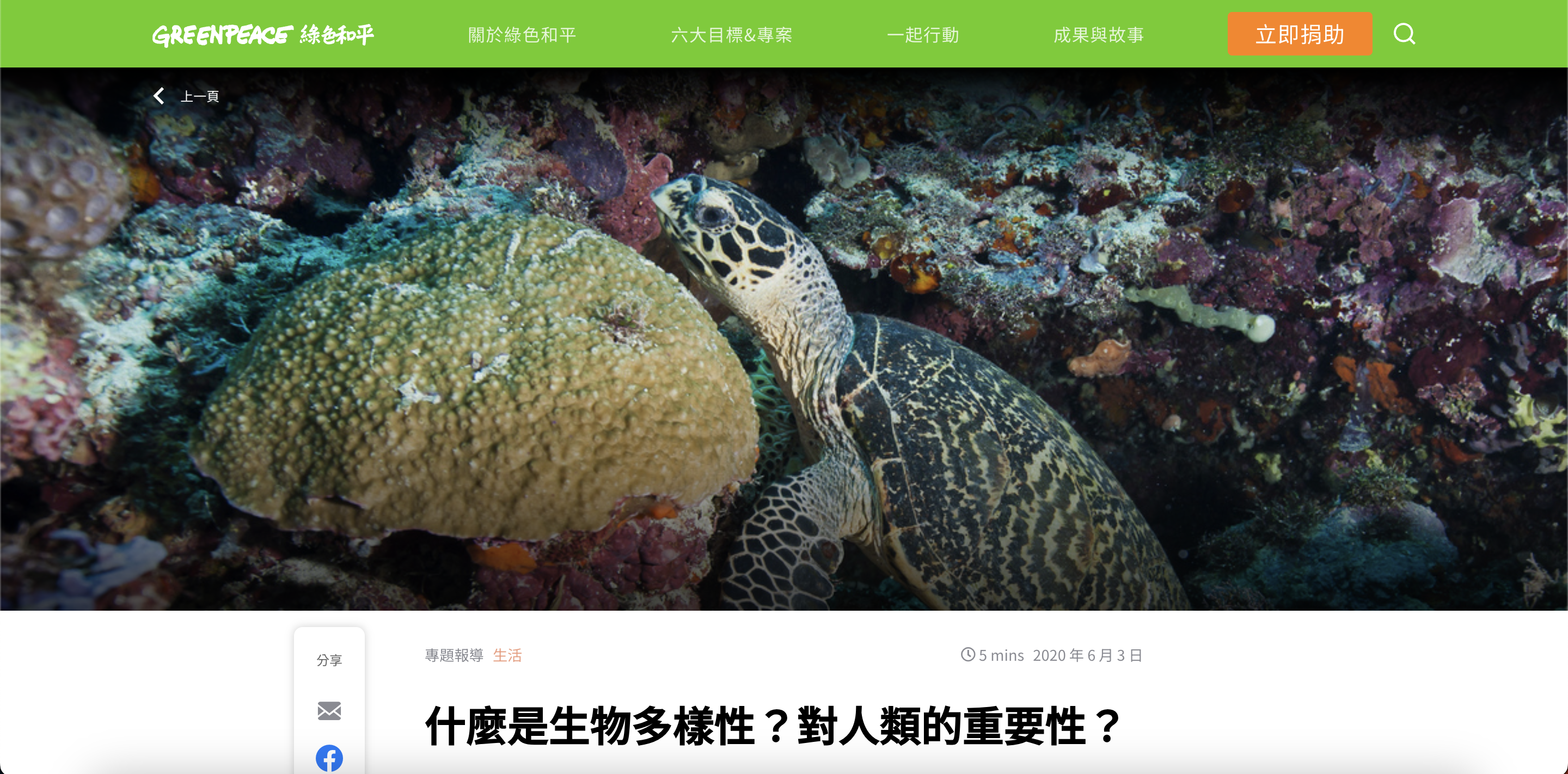 綠色和平從環保行動角度說明生物多樣性對人類的重要性與保育議題。