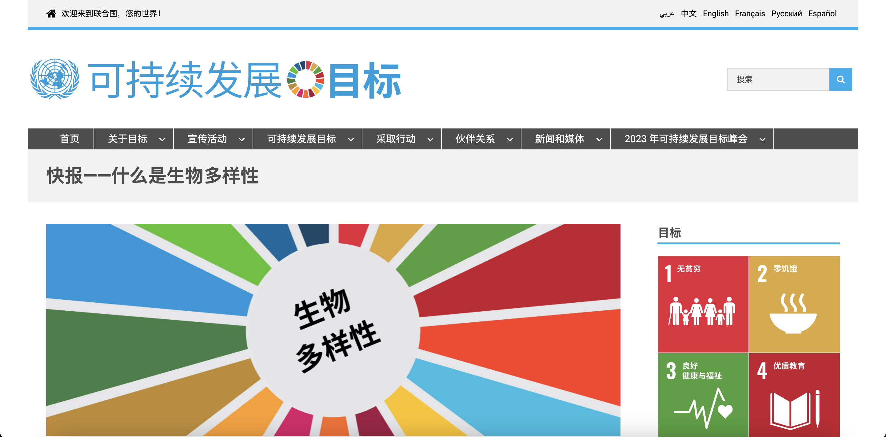聯合國永續發展專頁,以快報形式介紹生物多樣性的概念與國際議程。